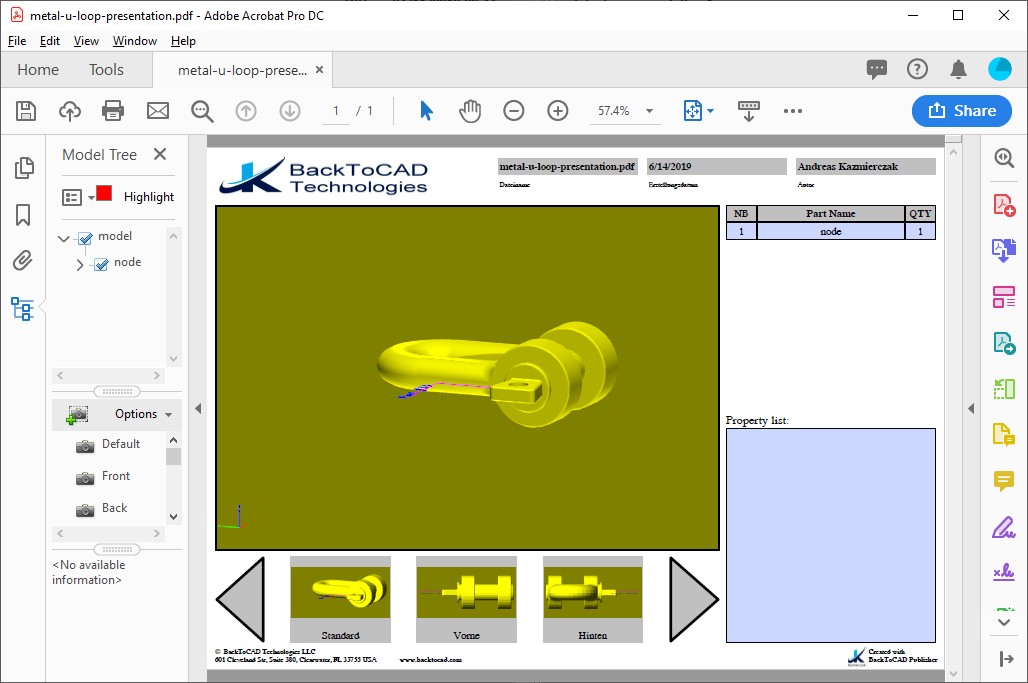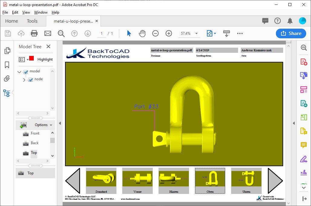 BackToCAD Publisher creates 3D PDF or PRC alternatively with Net Models or the B-Rep Models.