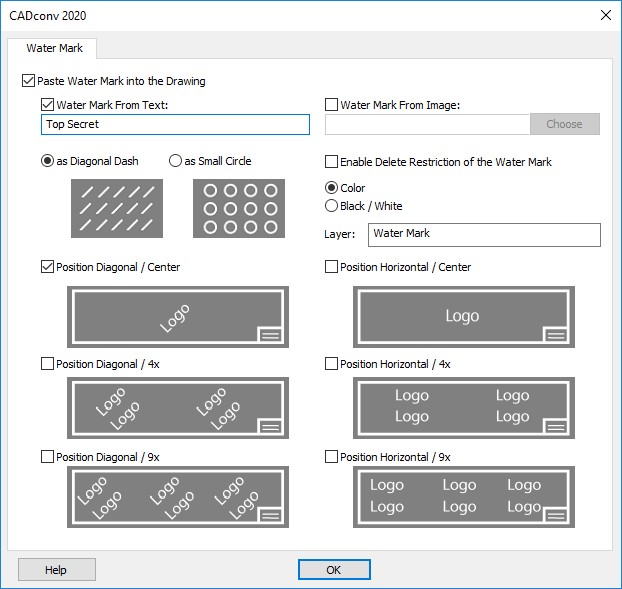 BackToCAD Publisher security function allows the user to place their own watermark onto 2D PDF, 3D PDF or PRC.