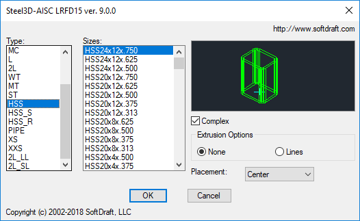Steel3D-AISC contains dimensions and section properties for structural steel shapes from the LRFD15 database.