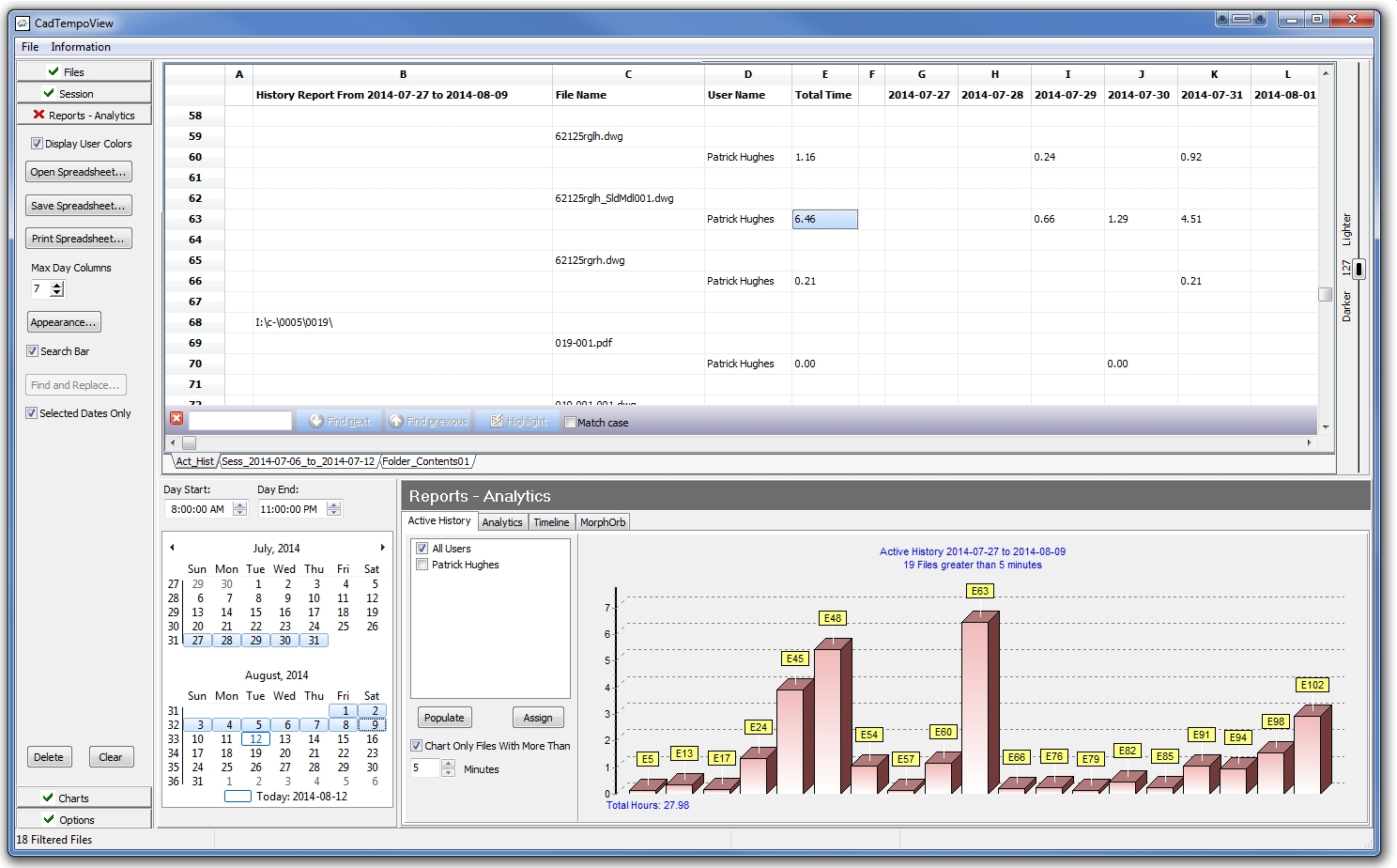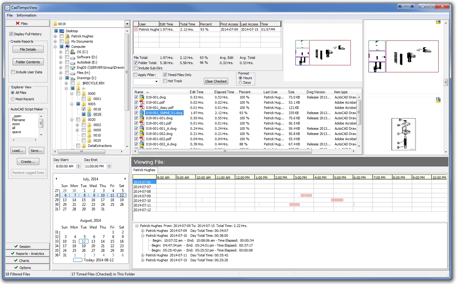 CadTempo will accurately track the time spent working in your Autodesk® AutoCAD® drawings. Not only is the total time of the open drawing recorded, but the actual edit time is also recorded.