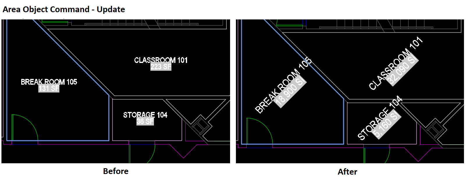 6. Update - gives the user the option to select pre-built AOL/POL/APL Block, Attribute, MText, and Text objects with Fields that contain linked Area / Perimeter values updating them to match the current AOL/POL/APL Option settings.