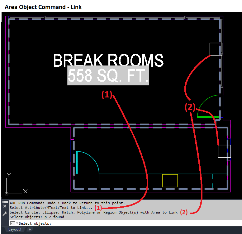 Start Command [AOL] to Link Attribute/MText/Text to Area Boundary...