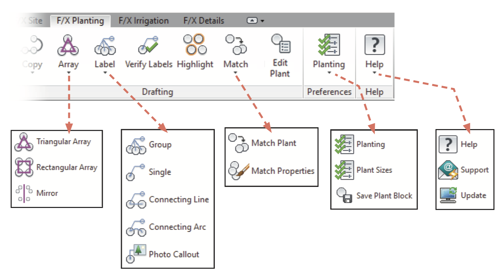 Planting F/X transforms Autodesk® AutoCAD® into a platform built for landscape architects. Start by building a plant palette from a database of more than 26,000 trees, shrubs, and groundcovers. Don’t see your plant? You can add it! Assign data such as plant size, per-unit cost, and more to each plant. Then place your plants in your CAD drawings as smart blocks for individual plants or smart hatches for planting areas – all pulled from an extensive library of plant symbols. You can even use your own custom blocks and hatches.