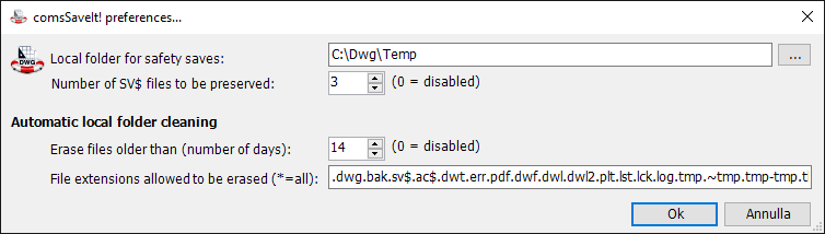 Now, comsSaveIt! incorporates this function. If properly activated and set, the first time you run AutoCAD in your workday, comsSaveIt! will clean the local temporary folder from files older than the predefined threshold. See below for detailed information.