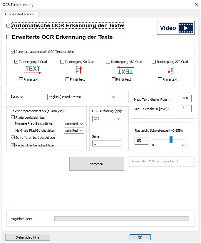 - OCR Erkennung von PDF Texten (native, als Raster oder als Linien)