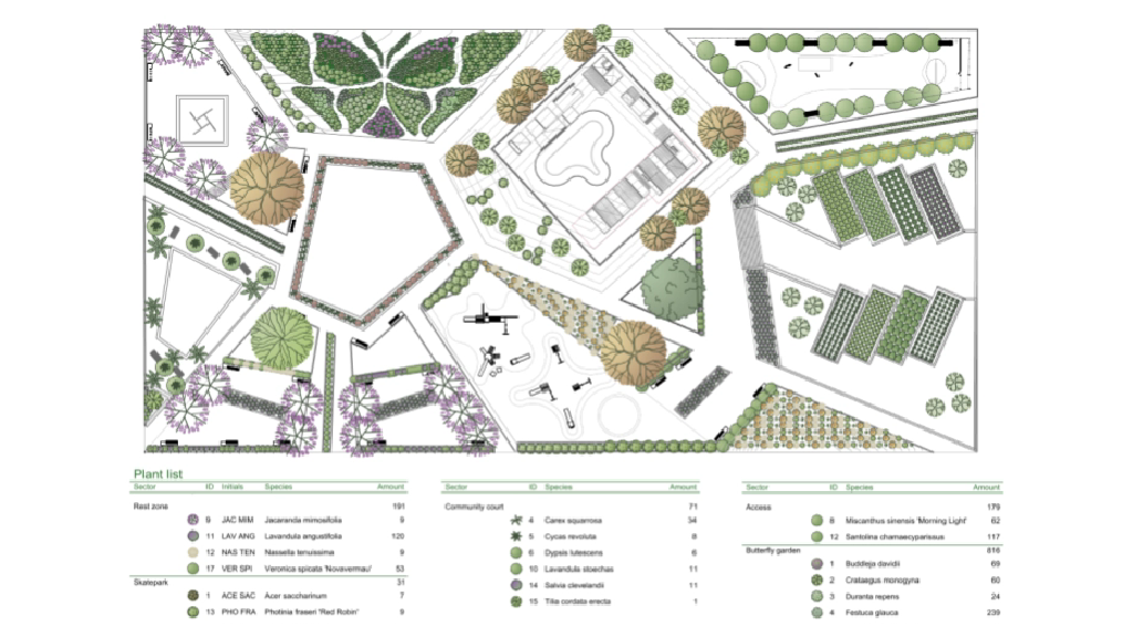 - Documentation tools for preparing technical plans such as dimension plan, planting layout plan, irrigation plan, and producing schedules, adding labels, etc.