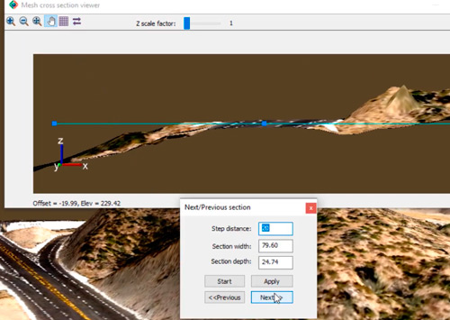 - Open the Mesh Cross Section Viewer to inspect an orthographic view of a mesh cross-section.