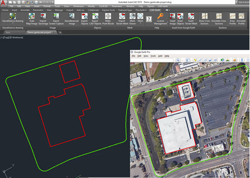 - Import Google Earth™ image to CAD Export CAD screenshot to Google Earth™.