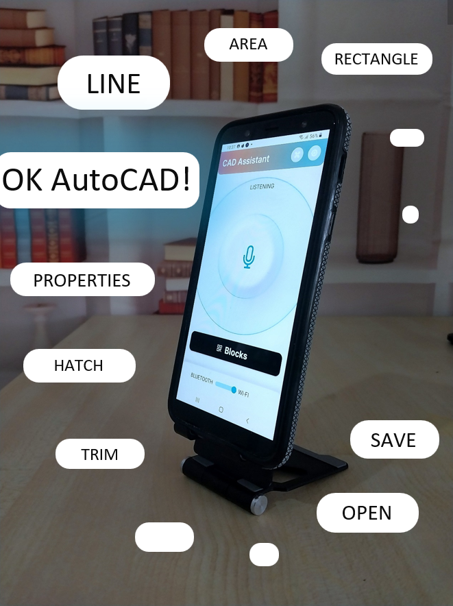 (1) Install the CAD Assistant application on a smartphone from Google Play (Android OS) https://play.google.com/store/apps/details?id=com.prototype.voice_autocad_android