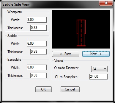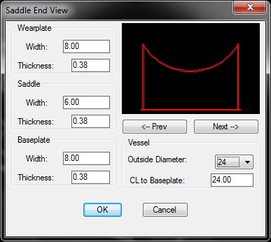 Creates 3D steel saddle for horizontal vessels from a dialog interface. Unlimited dimensions can be used for the wear plate, saddle, and baseplate. Works with our Tanks3D App for creating 3D tanks and vessels.