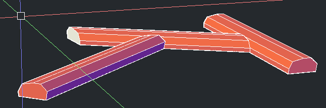 Note about the term 3D solid wood frame: it must be a 3D solid that represents a frame that lies horizontally. Originally, it should be an extrusion from a solid profile of any shape. From the top view, the two selected solid wood frames should intersect with each other.