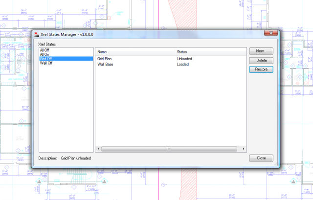 The XrefStates plugin can be used to simplify the use of multiple Externally Referenced drawings inside Autodesk® AutoCAD®. It captures the loaded/unloaded state of these Xrefs and saves them inside the drawing, just as AutoCAD Layer feature allows you to save Layer States. This is highly beneficial for people using Xrefs to store different sets of data and wanting to move quickly between them.