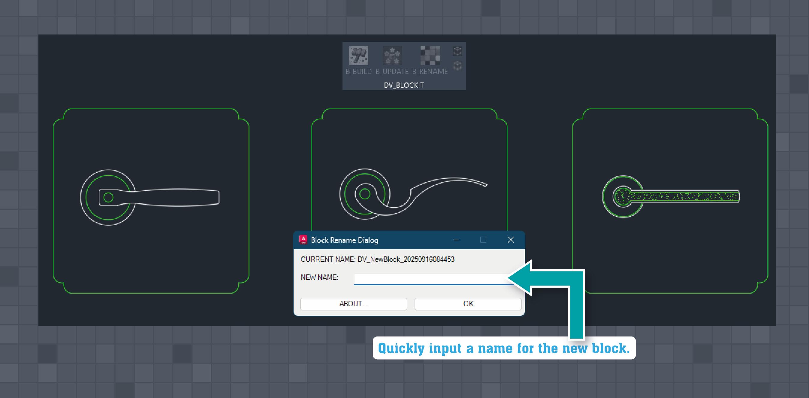 3. Block Rename: Effortlessly rename blocks with a user-friendly dialog, preventing naming conflicts and organizing your library for faster access and improved project management.