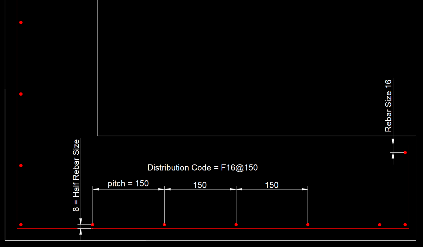- Finally, the app will draw an array of specified rebar dots on the selected LINE, POLYLINE, or ARC