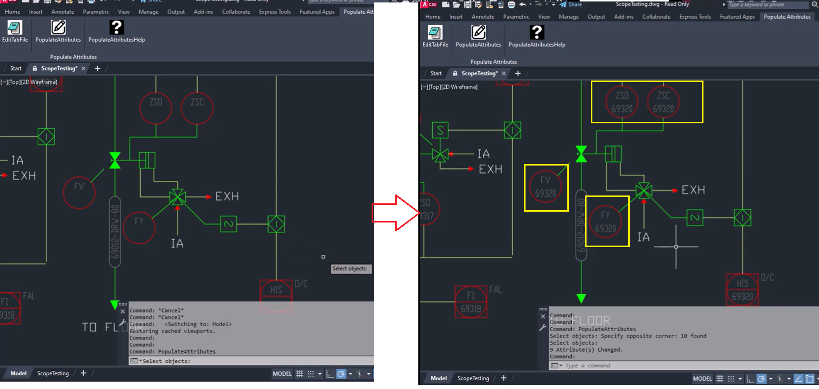 Select any number of entries in the dialog box, and then choose from the radio button whether you want to make an on-screen selection, process all blocks on the current layout, or all blocks in the entire drawing.