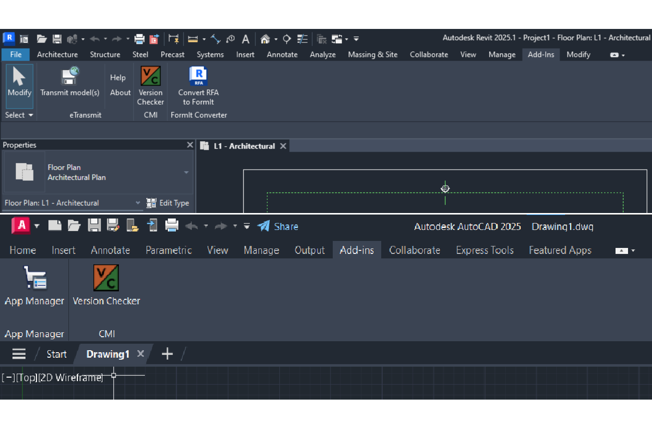 - Seamless Integration: Run CMI Version Checker directly from within Revit, AutoCAD, or Civil 3D, enabling you to continue your workflow uninterrupted while the tool performs its magic.