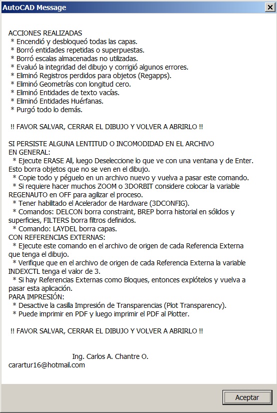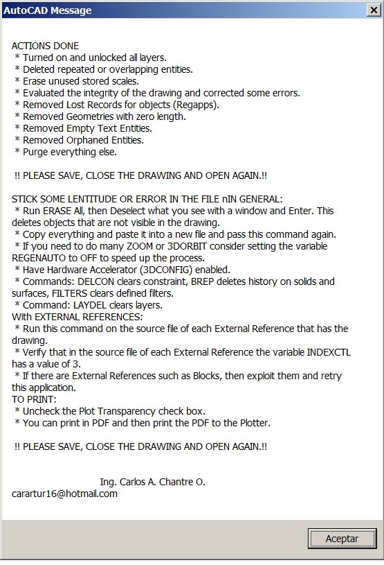 This application activates commands that allow you to clean and correct Autodesk® AutoCAD® files, according to good practices for this matter.