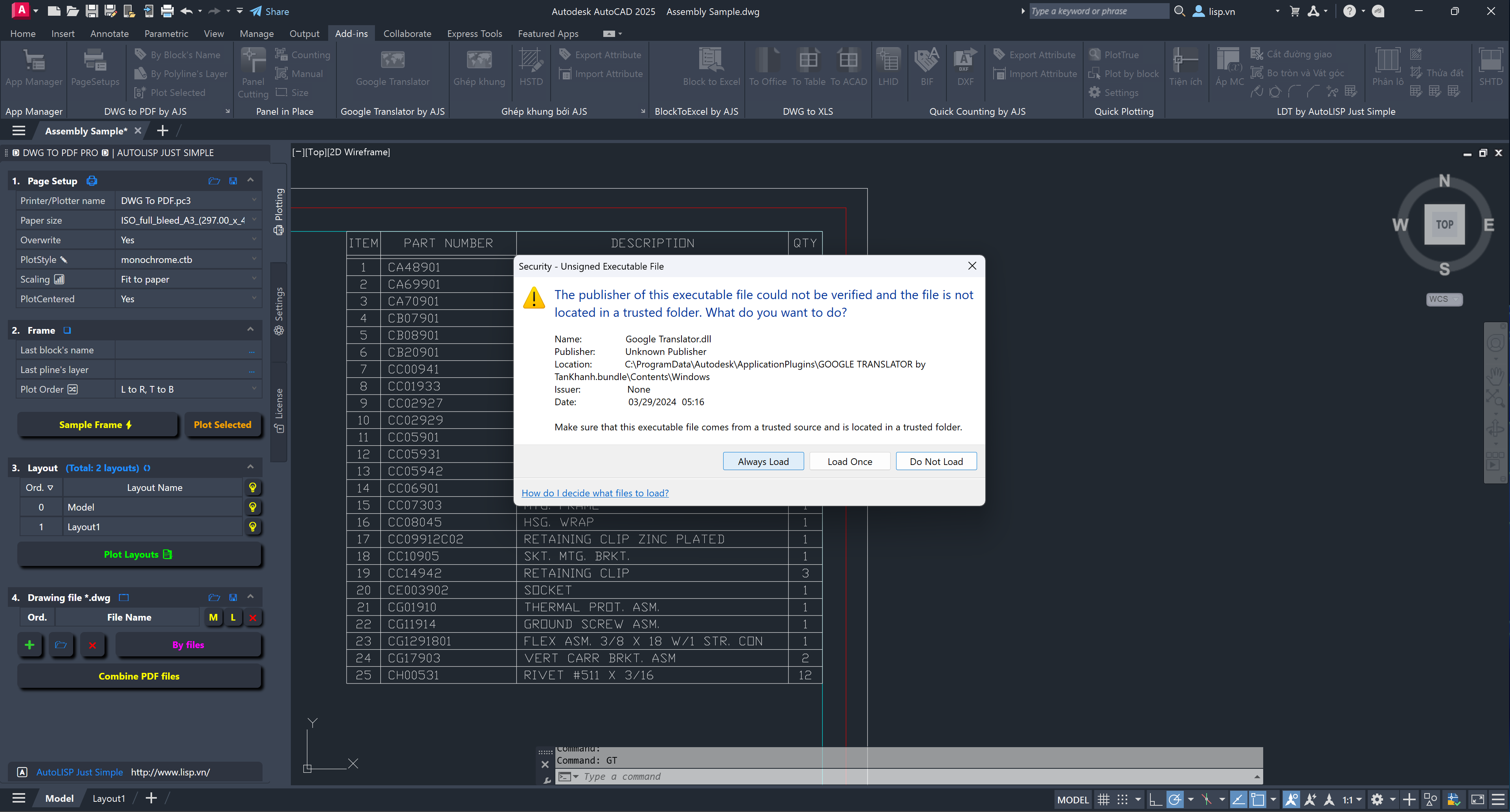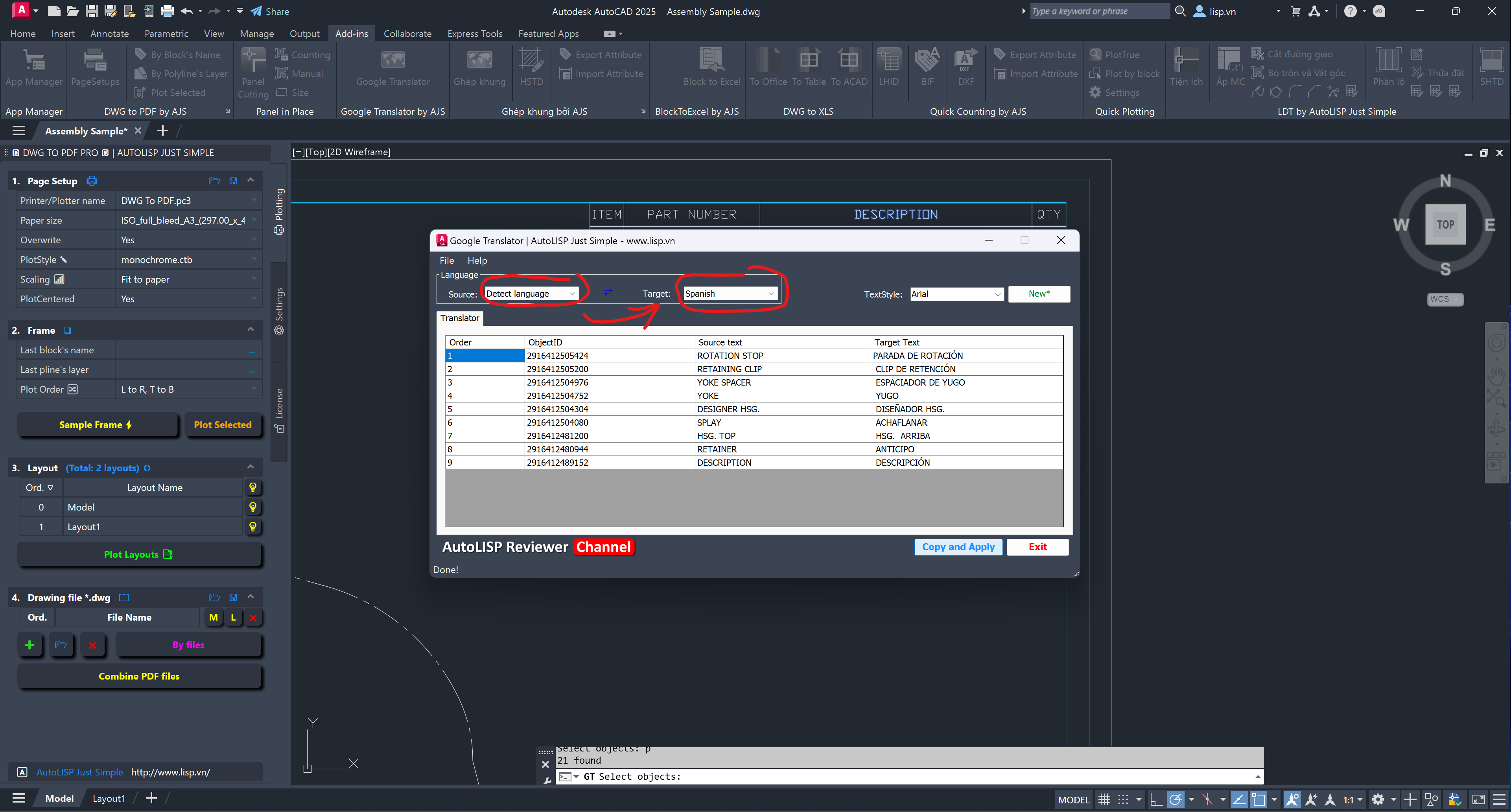 App using free Google Translate API request to translate the content. So, Autodesk® AutoCAD® should be connected to the Internet all the time while using the command.