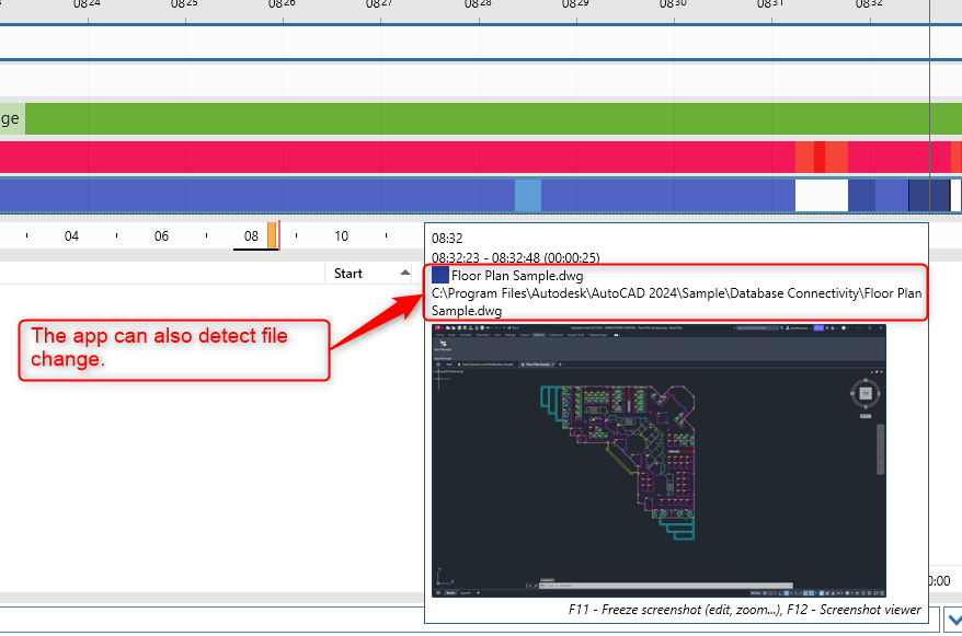 It integrates Autodesk® AutoCAD® data into the ManicTime document timeline, which can help with efficient time tracking and monitoring of your project's progress.