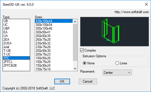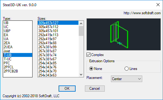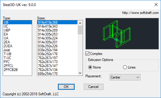 SoftDraft Steel3D UK is a software application that allows you to create 3D models of structural steel shapes. These shapes can then be placed as columns or beams in a 3D model space. The shapes are created from dimensional data in the UK Steel Database.