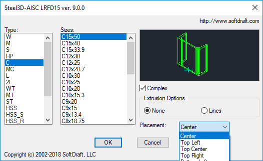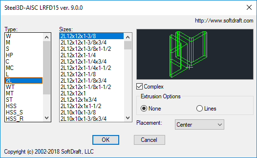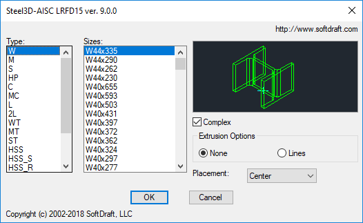 Steel3D-AISC contains dimensions and section properties for structural steel shapes from the LRFD15 database.