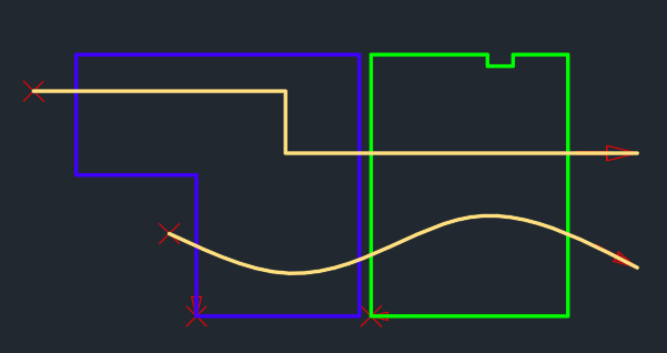 While the command is running, a red cross will be drawn at the starting point of the curves. In addition, the direction of the curve can be indicated by a red arrow from the beginning of the curve to the end point of the curve.