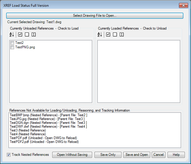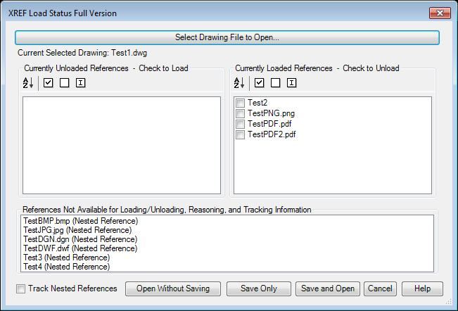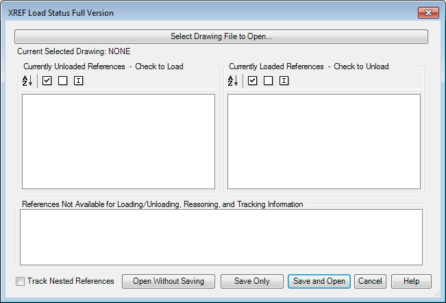 When working with many references or large references, this app will come in handy allowing the user to select the desired drawing they wish to open, select reload or unload checkboxes, check the desired references to be modified, then click Save and Open.