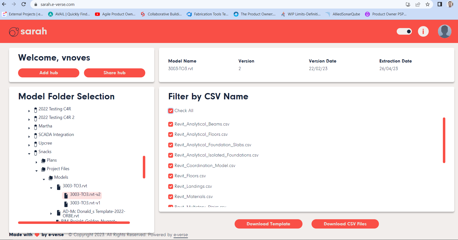 Sarah is packed with dynamic features designed to help you streamline your BIM management. From access to your BIM 360 Hub to viewing and reporting data, we make it easy to manage the insights you need by visualizing specific information in real-time. Feel free to use this tool to better manage the custom data we packed!
