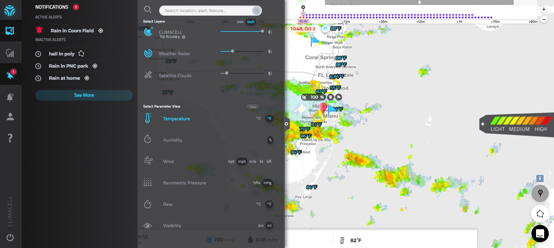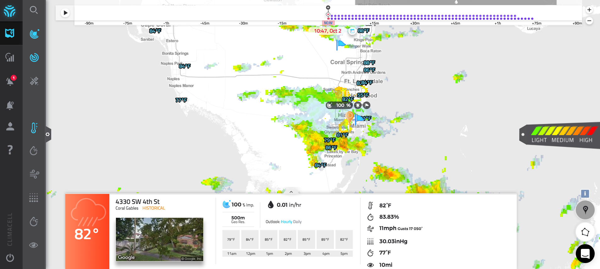 HyperCast is the world's most advanced weather-based decision-making tool. It features ClimaCell's nowcasting engine, providing pinpoint weather prediction down to city-block-level granularity in real-time and at one minute intervals 0-6 hours in the future. The HyperCast data quality is unmatched in the weather industry, achieving up to 90% correlation with ground truth, as opposed to 50% correlation achieved by other sources.