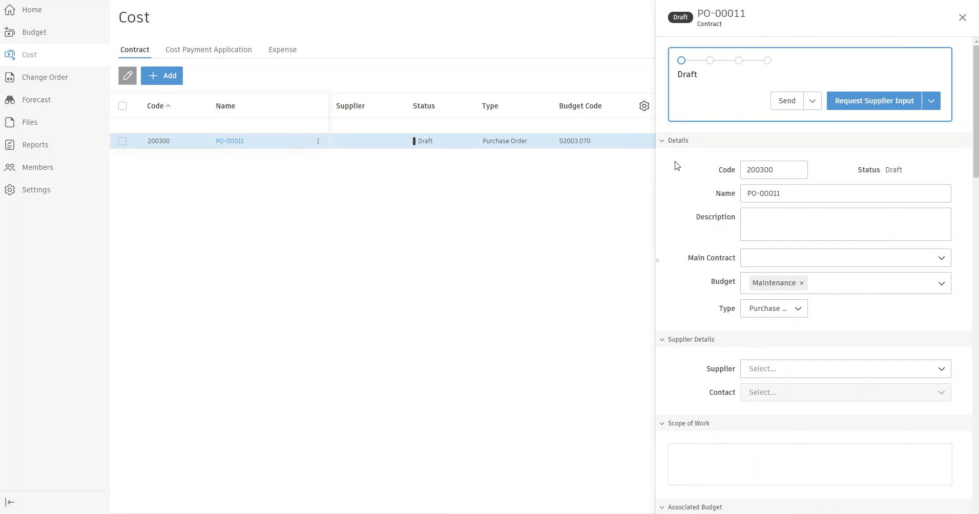 - Verify Purchase Order deliveries: Executed contract expenditures and change orders sync to SiteSense as Purchase Orders. Field users can process digital receiving reports for materials from a mobile device, setting material status and location while verifying actual received quantities against the Purchase Order. Completed material receipts sync to the Build, Cost Management module, allowing office users to close the loop for vendor payment. Completed material issue tickets also sync to Autodesk Build’s Cost Management module as project expenses.