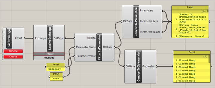 1. Share Geometry and parameters from Grasshopper through Data exchanges 2. Load and Bake Geometries from exchanges created by other Data Exchange connectors. |