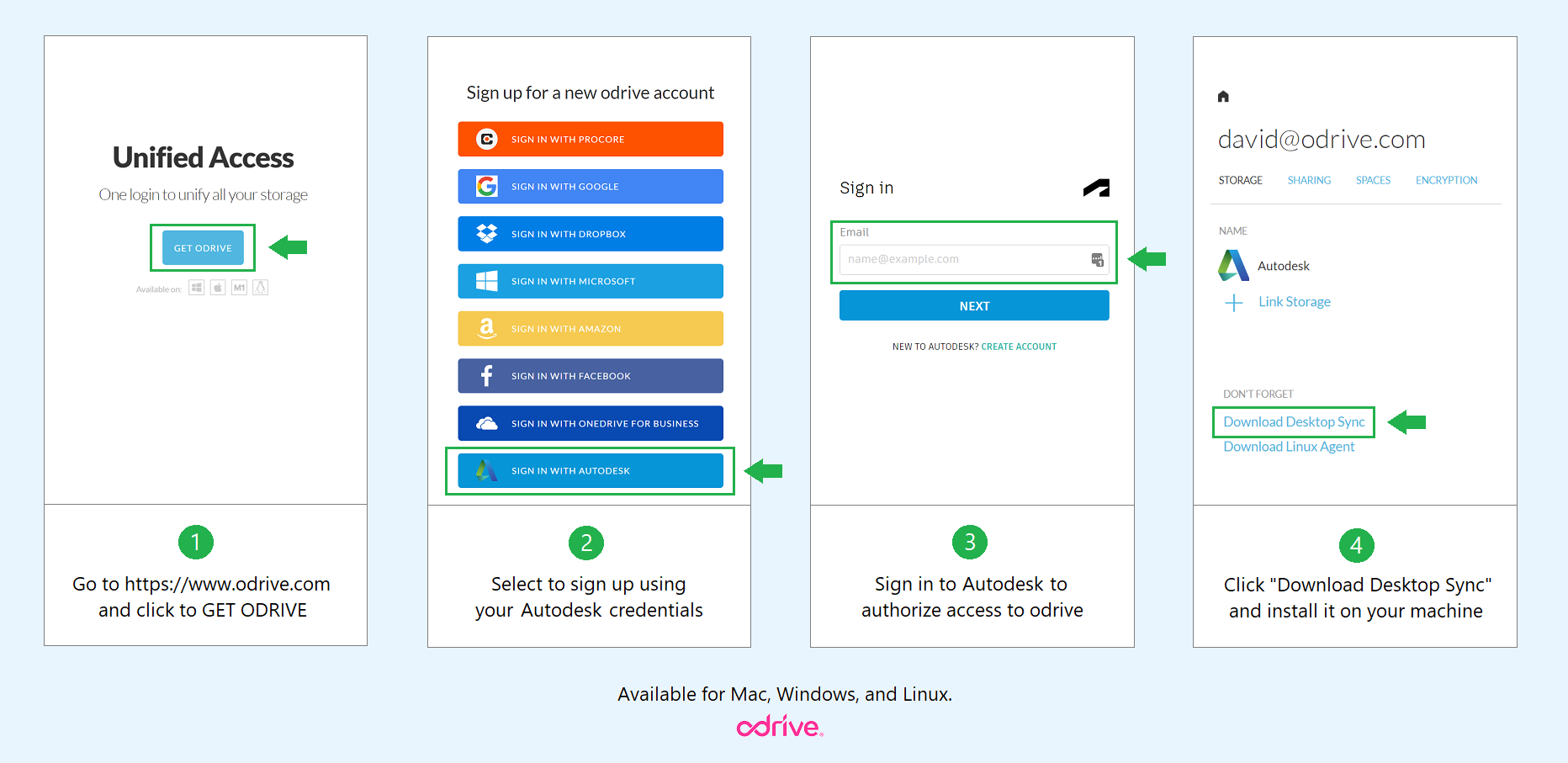 - Sync only the items that you need. See everything that is available, but only sync the items you need and unsync items at any time. odrive's progressive sync to Autodesk saves disk space, bandwidth, and time.