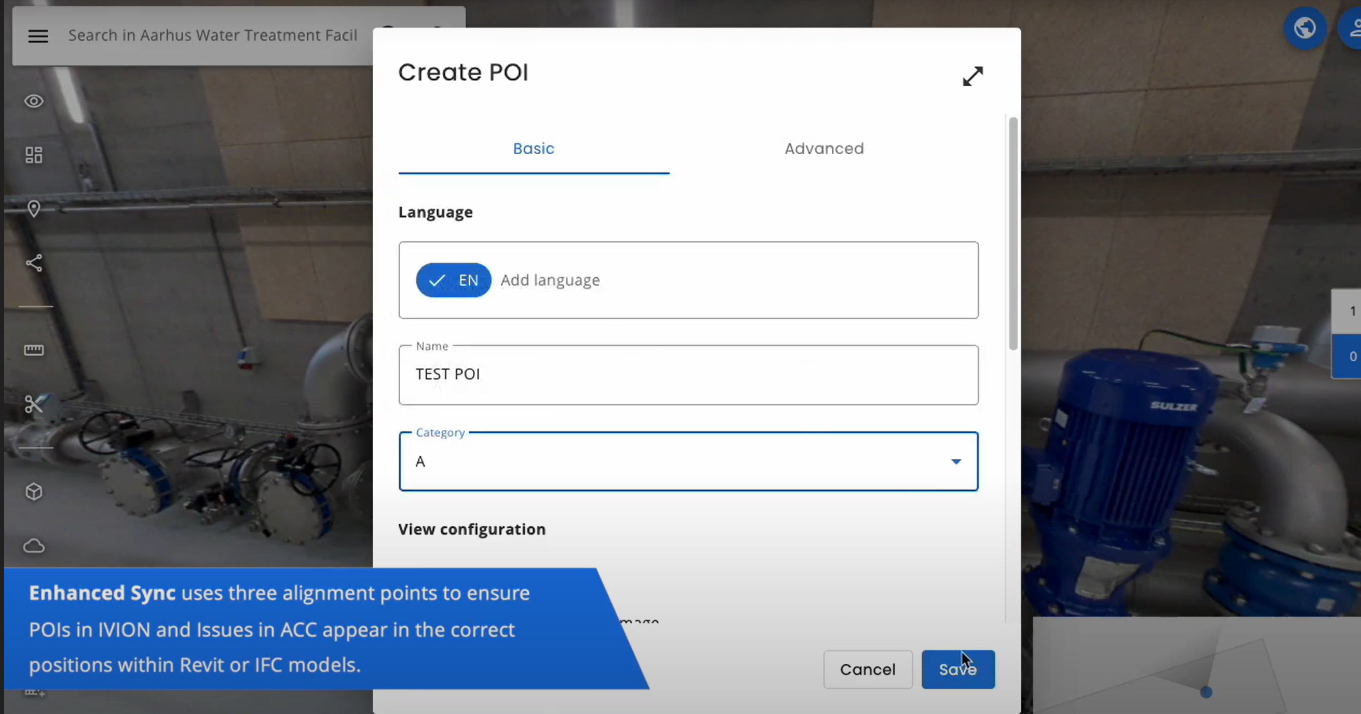 - Links an Issue type in a specific ACC project with the POI category in a specific NavVis IVION site.