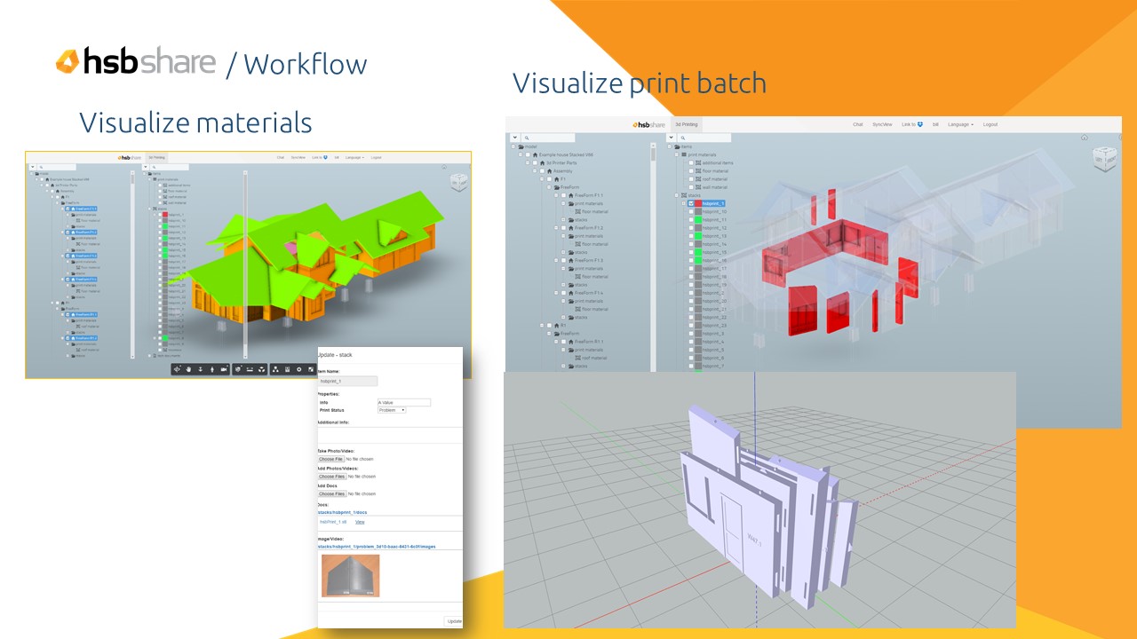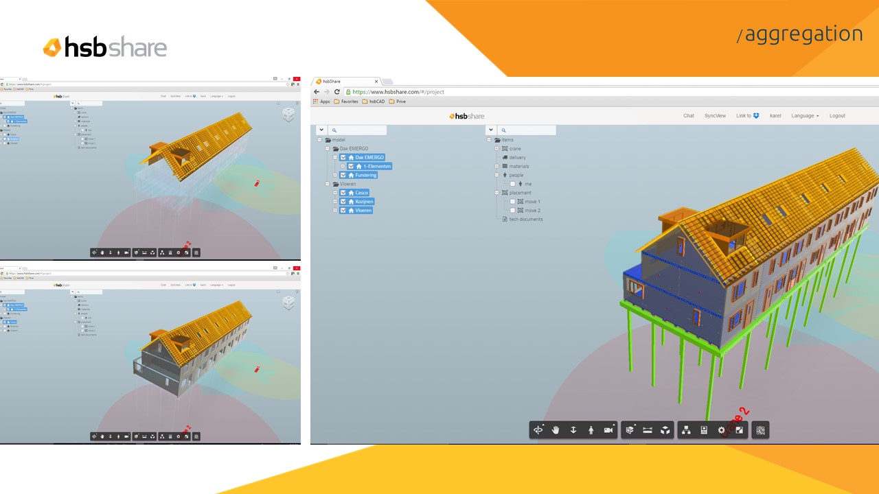 View projects with the hsbshare cloud based app that provides granted access levels to teams to manage projects from design to build. Customizable templated databases that are based in the cloud are accessible via different workflows, providing real time configured data. 3D Viewer geometry supporting multiple models agglomerating complete project scenarios. SQL query support for data mining analysis within projects.