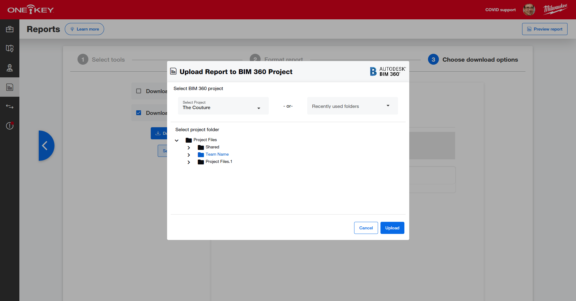 In support of a connected Field, Tool Crib, and Back Office, the One-Key Autodesk® BIM 360® integration creates efficiencies in both process and access to information. This integration eliminates dual entry setup of Jobs and People, allowing the Tool Crib instant access to this data in One-Key once entered into BIM 360. Reduce manual effort and upload your Digital Torque Wrench reports directly to your BIM 360 document library.