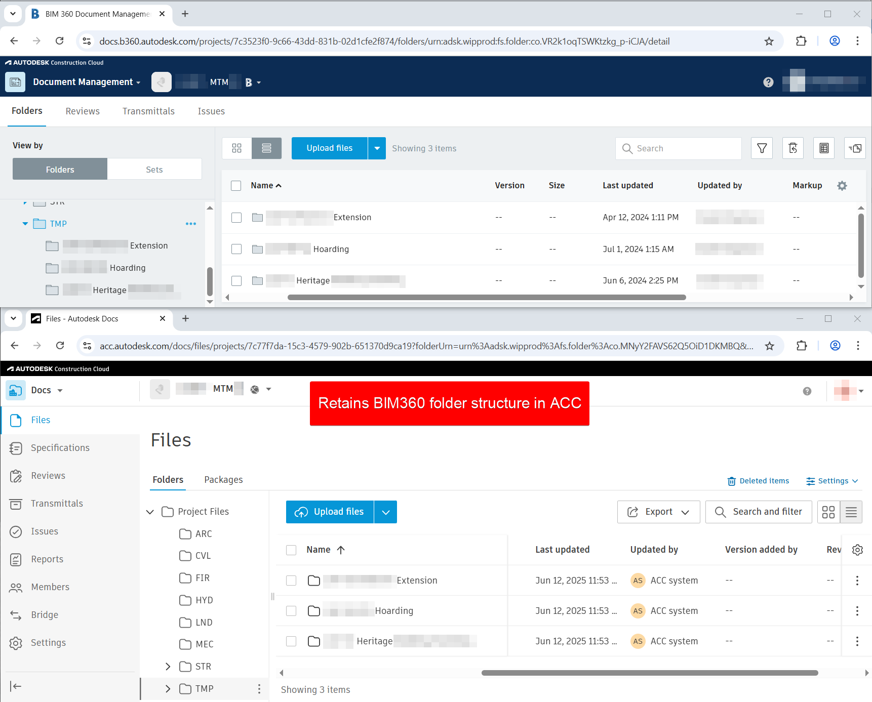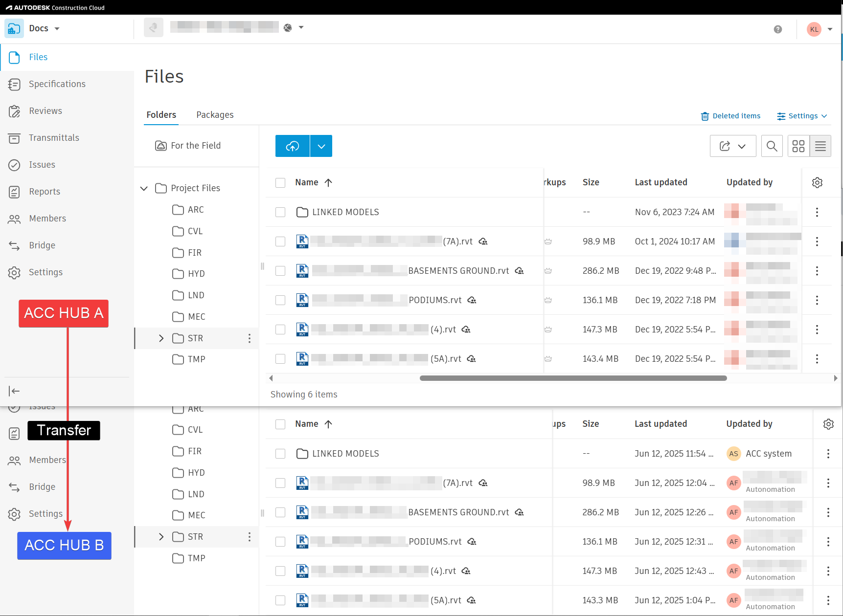 Whether transitioning from BIM 360 to Autodesk Construction Cloud (ACC) or reorganising within ACC, Hub Transfer handles the technical complexity whilst you maintain project momentum. Our professional implementation team manages everything from setup to completion - you get expert service, not just software.