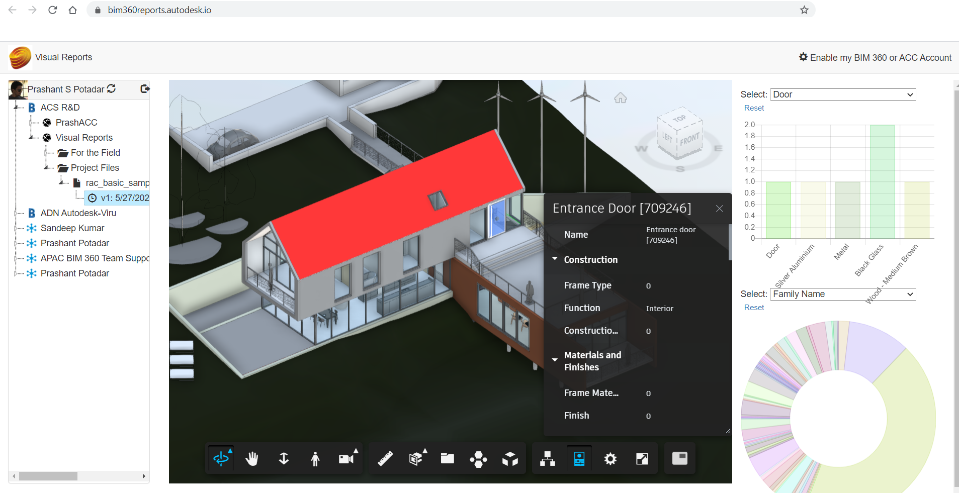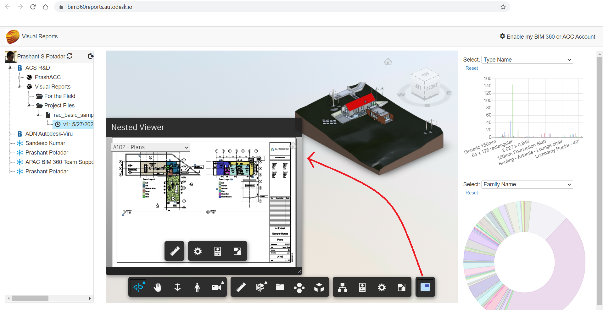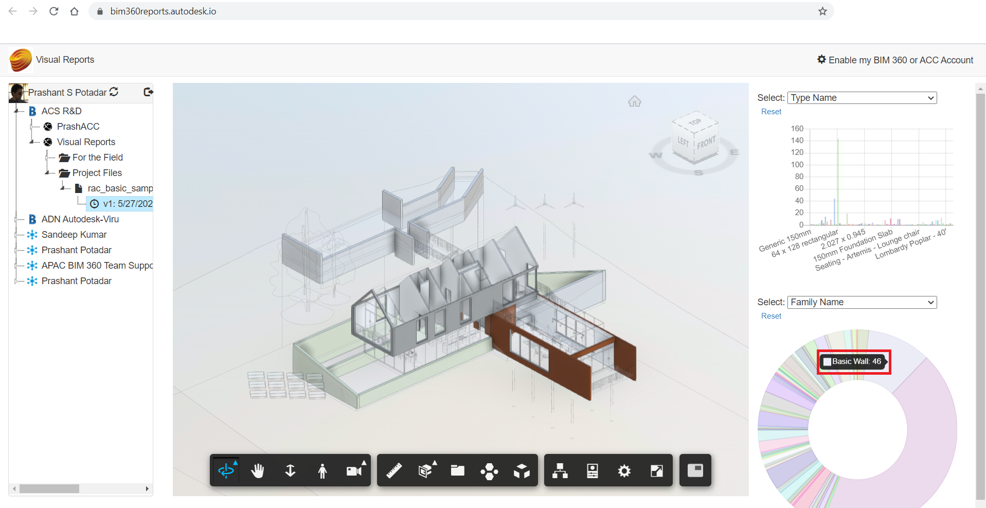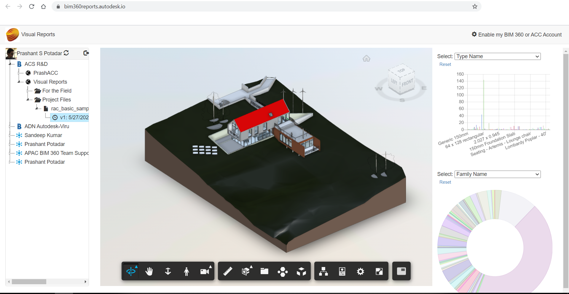 This application produces the dashboard in pie & bar charts with extracted data of the Autodesk® Revit® model and organizes views in 3D and 2D sheets. The model can be from Autodesk® 360, Autodesk® BIM 360®, or Autodesk Construction Cloud™ (ACC). It helps designers understand the model.