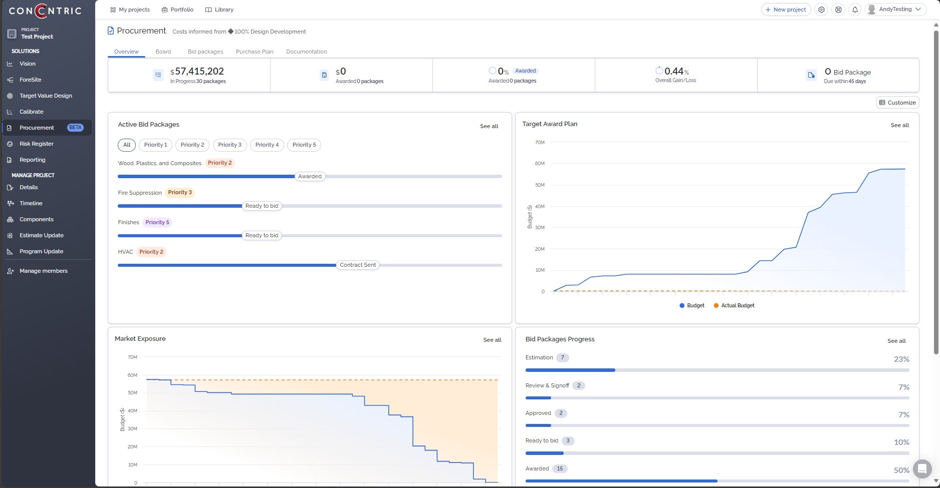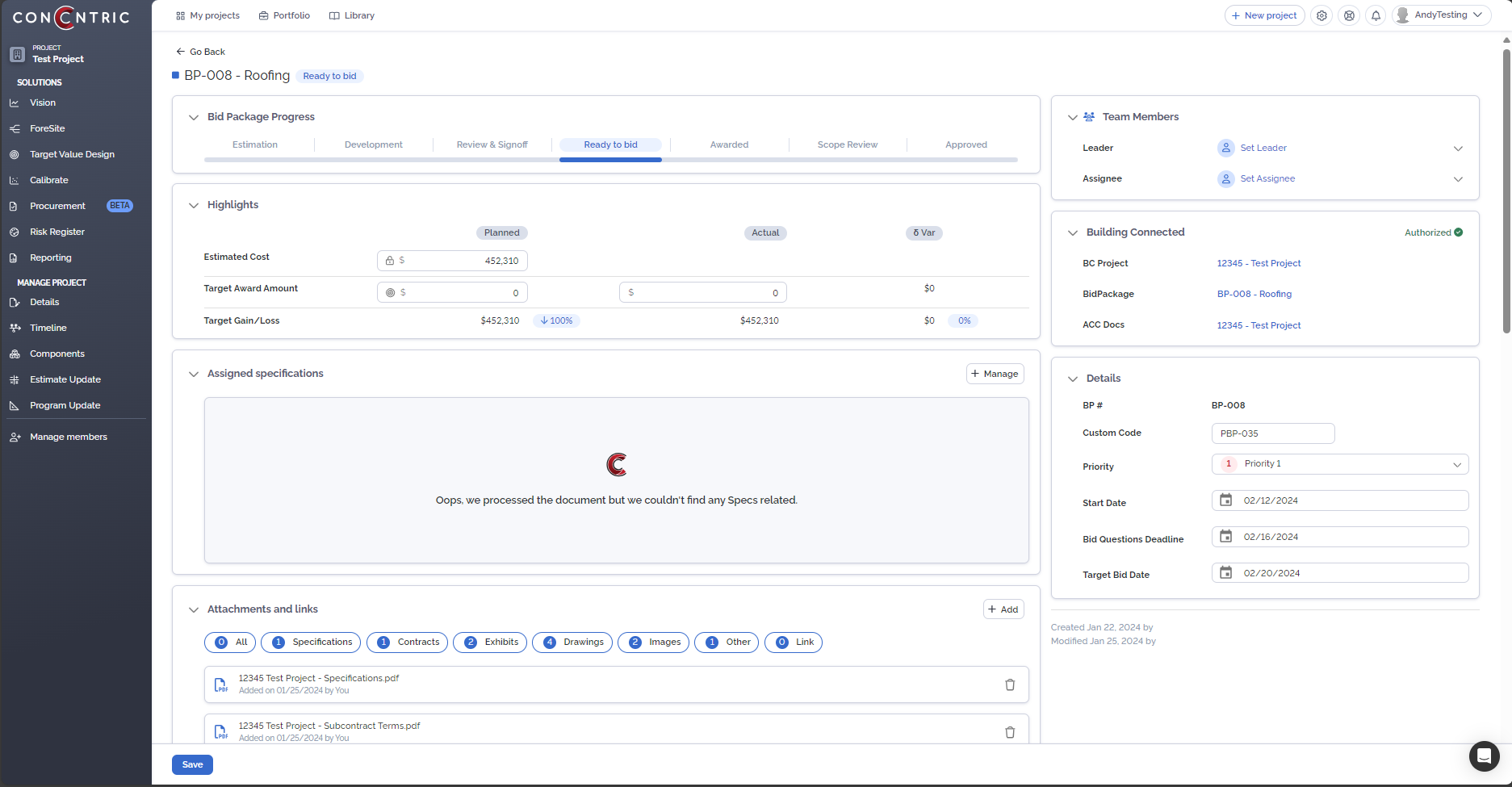 - Push/Sync 'Award Value' from BuildingConnected back to ConCntric Bid Packages.