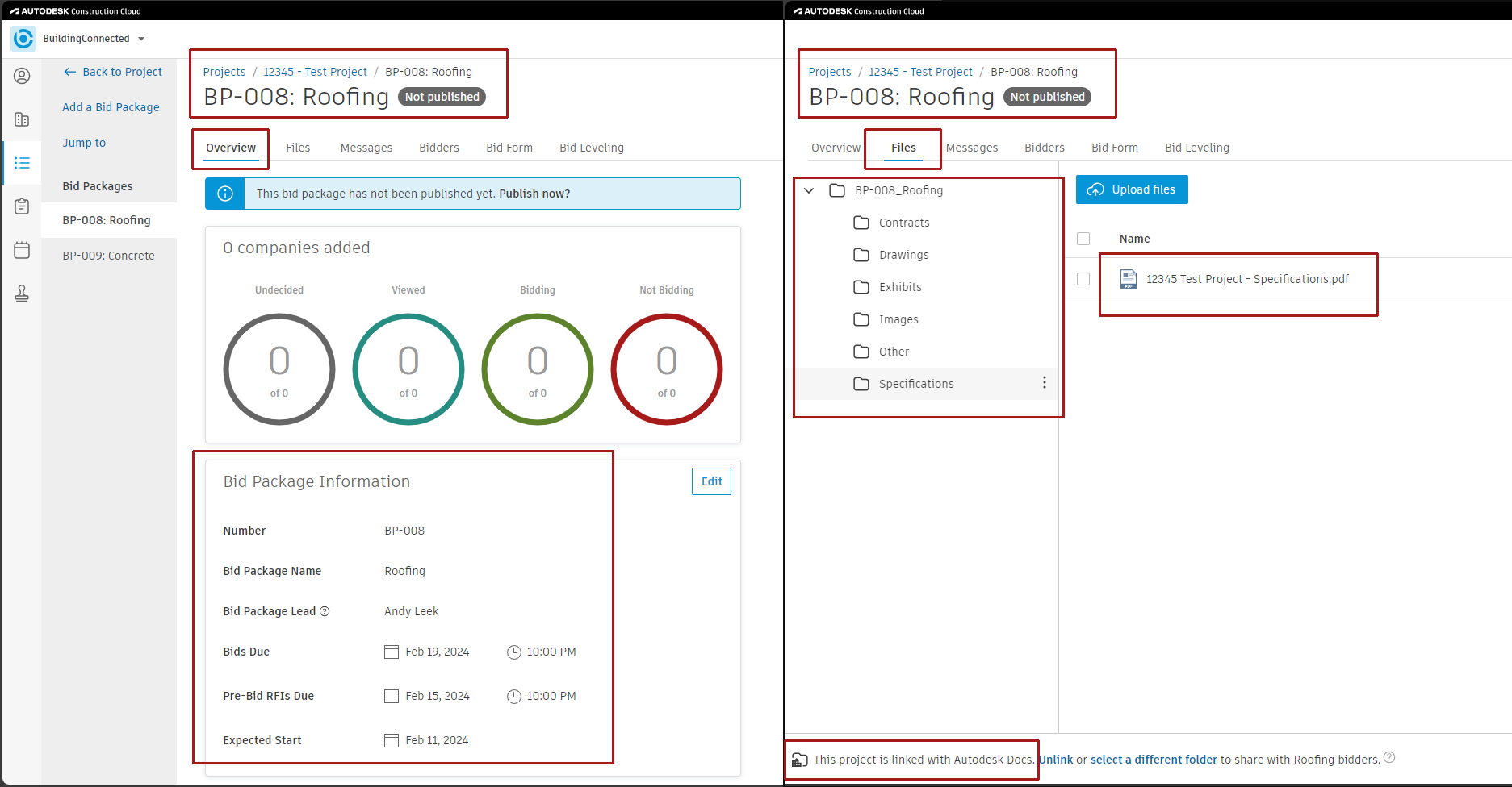 - Push Bid Package 'Content' (files) from ConCntric to ACC or BIM 360 Docs (Specs, Plans, etc.).