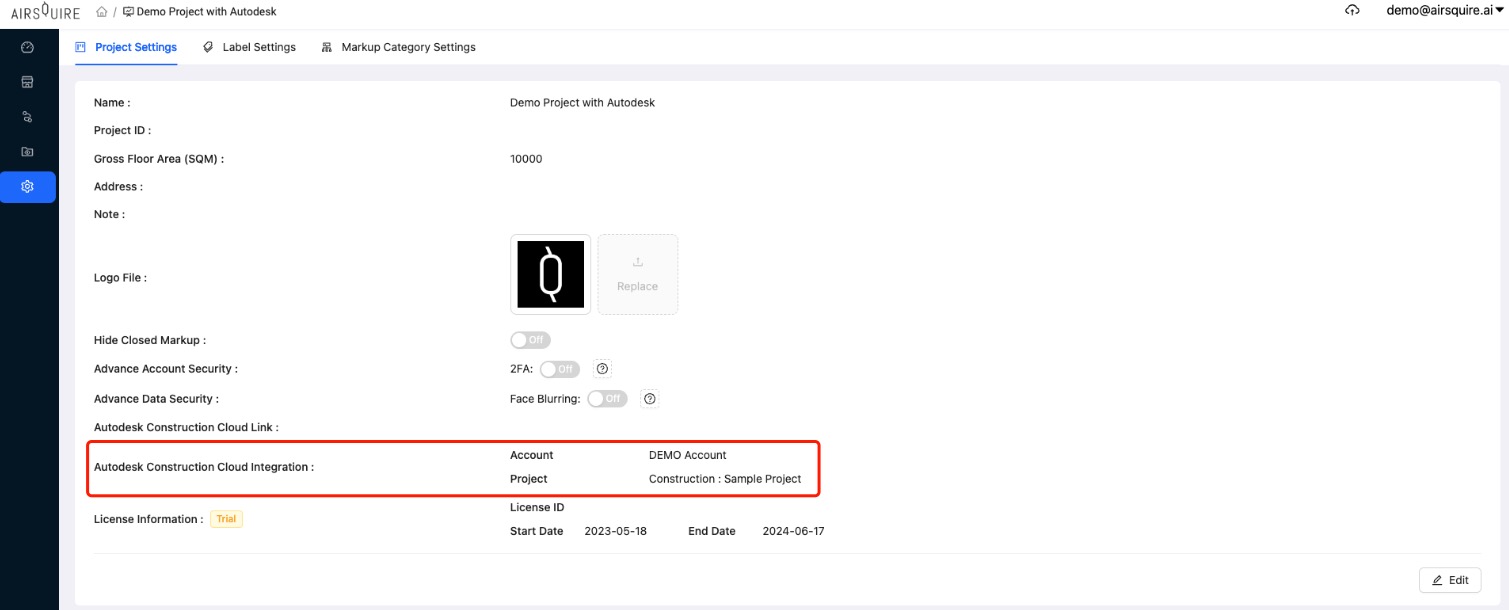 After installation in BIM 360, please get in touch with the AirGo Customer Success Manager to confirm the integration status.