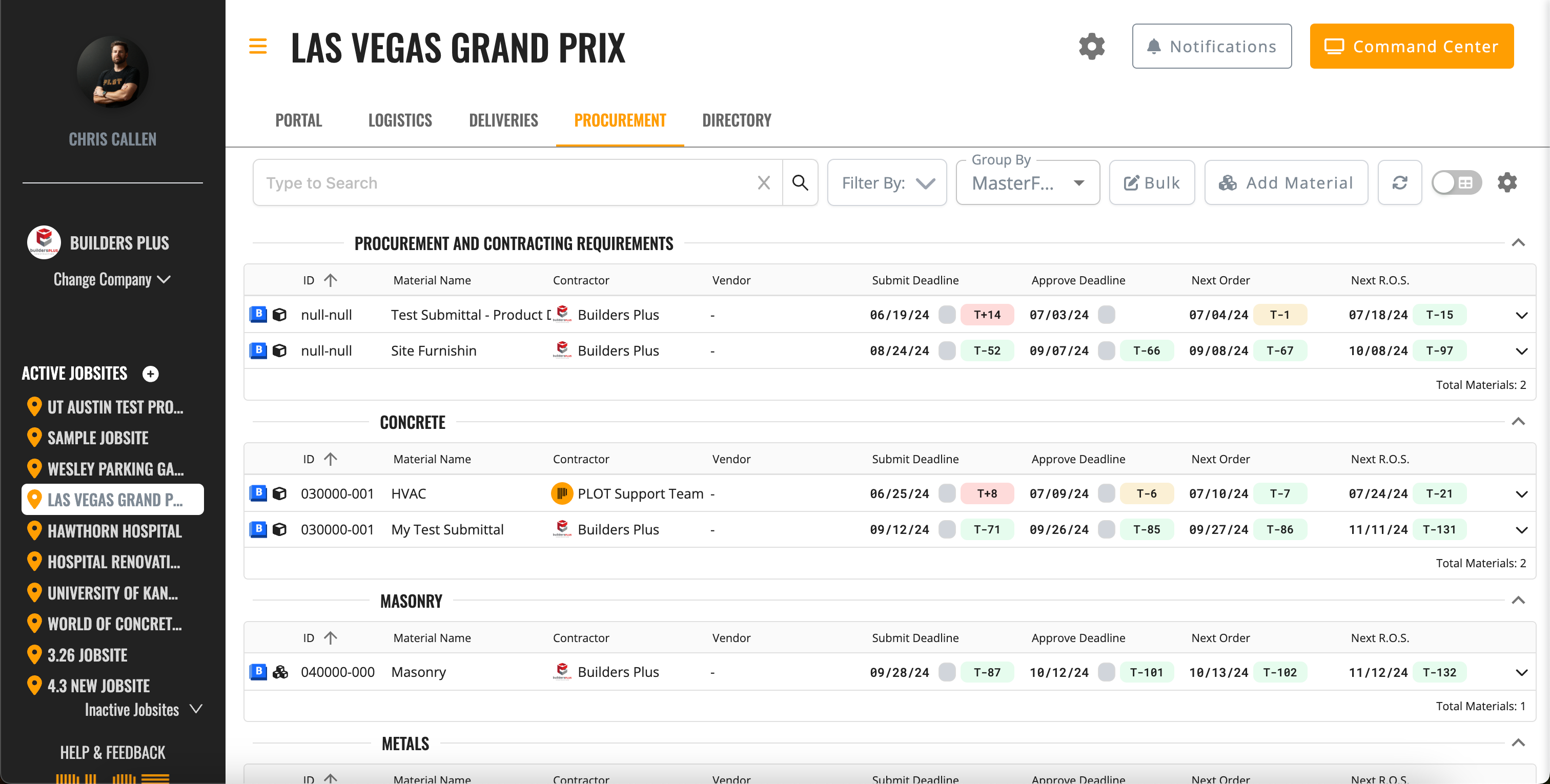 PLOT is a replacement for procurement log spreadsheets, allowing for synchronization between procurement, construction schedule, and submittal management. GCs who employ PLOT as a tool to manage their procurement have better insight into procurement deadlines and spend less time updating their procurement schedule and communicating the schedule to their trade partners.
