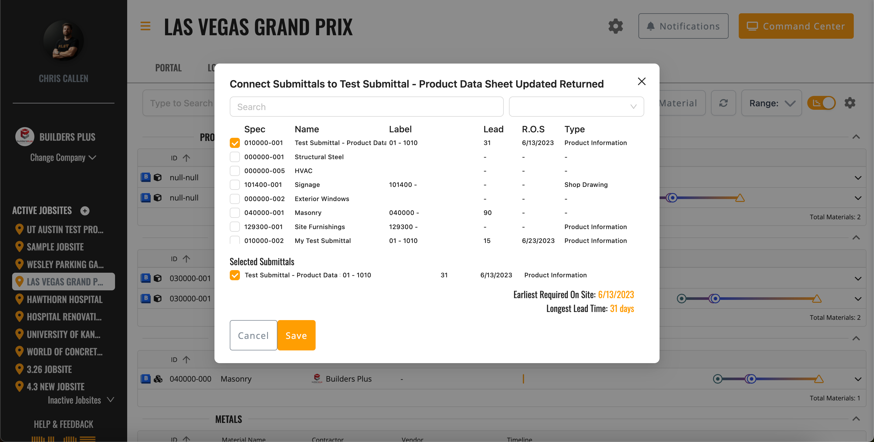 PLOT's connection to Autodesk® Build allows for seamless synchronization between the submittal and procurement workflows, ensuring that submittals are addressed in order of priority/urgency and material orders can be placed on time.