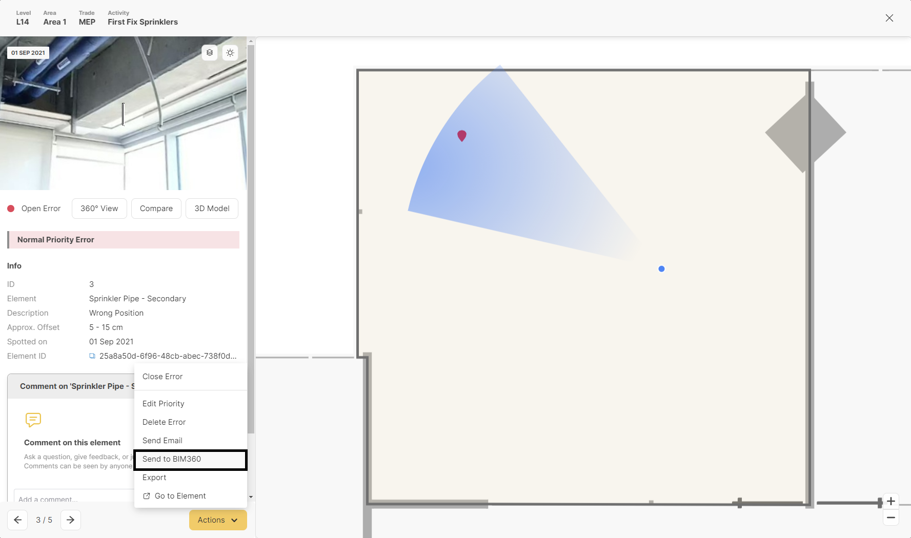 - Track issues and compare their 360 images to previous captures or to the BIM model