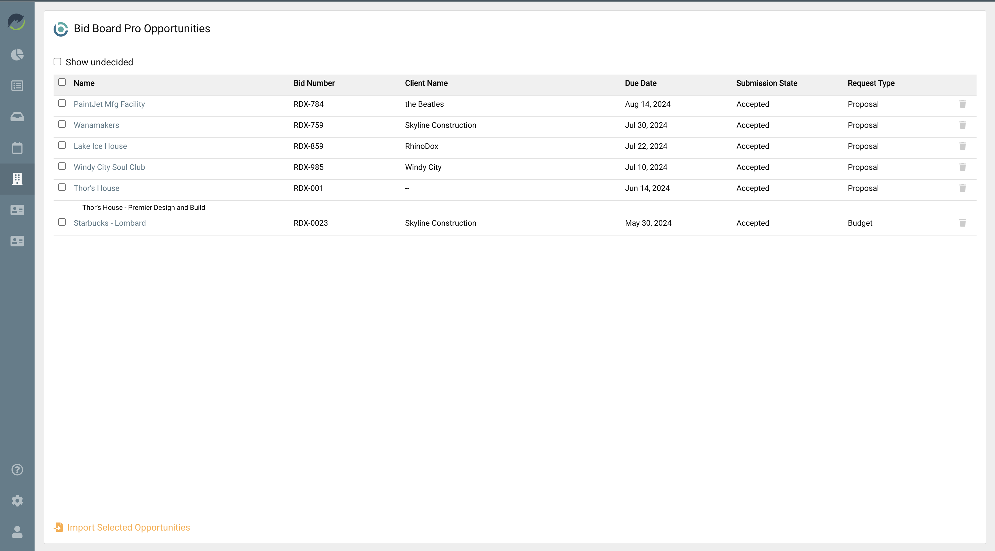 - One-Click Opportunity Access: Quickly Access Bid Board Pro opportunities with a single click from RhinoDox