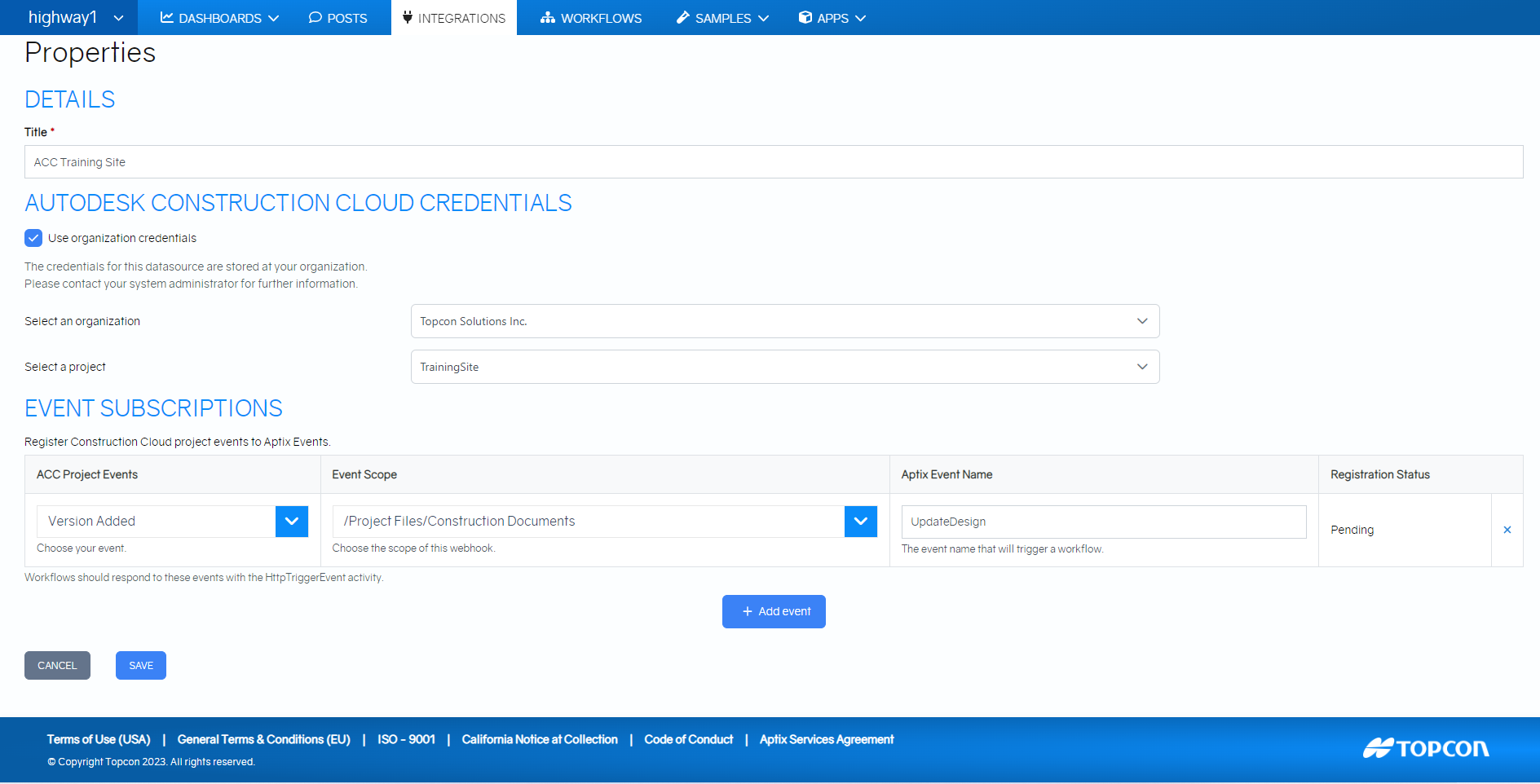 Aptix™ requires a separate subscription to the Topcon Aptix™ Integrations Platform. Please follow our Support link to purchase a license for your project.
