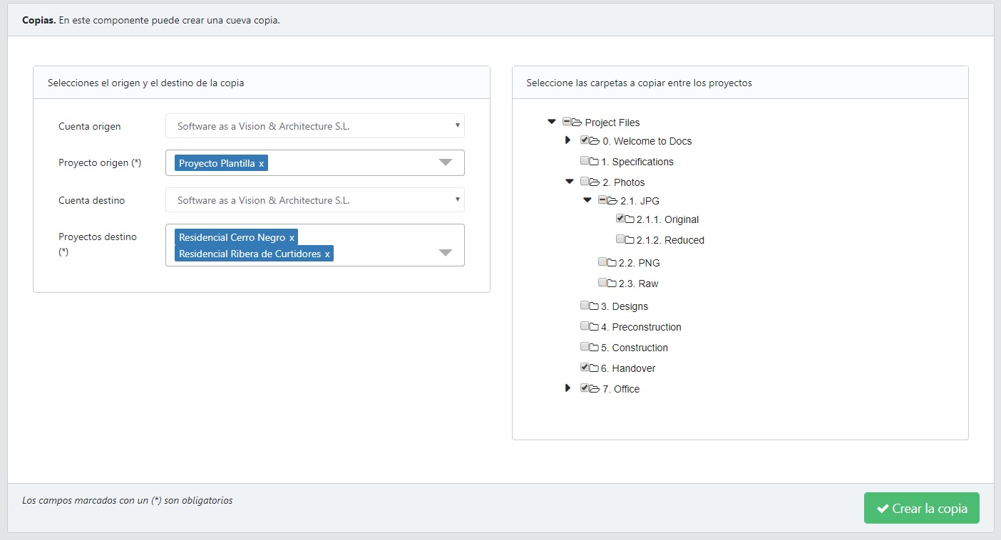También nos permite copiar archivos entre proyectos del propio BIM360. Por ejemplo, para copiar todas las plantillas de archivos al crear un proyecto nuevo.