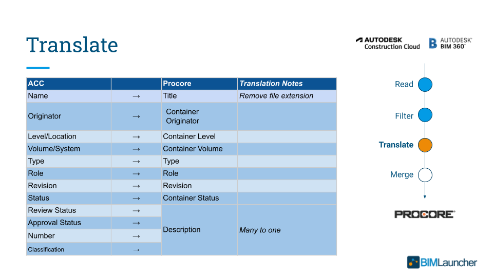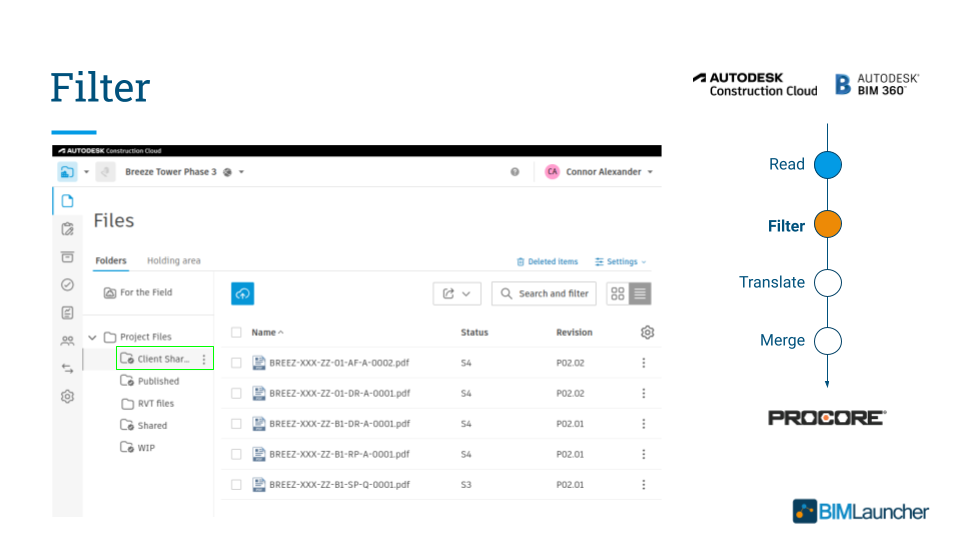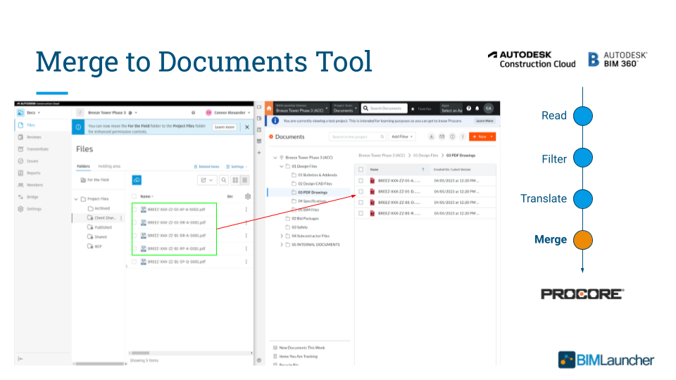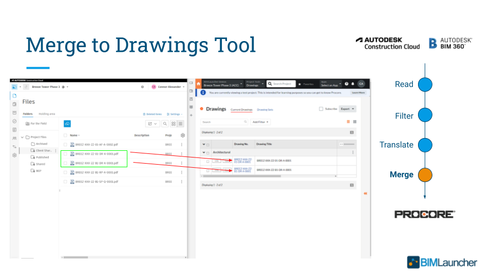 - Autodesk Files → Procore Drawings