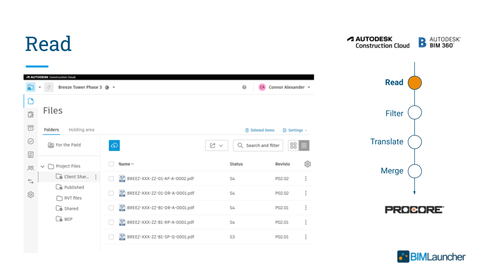 BIMLauncher's team of construction industry experts work with you to configure BIMLauncher to connect Autodesk with Procore for the following workflows: