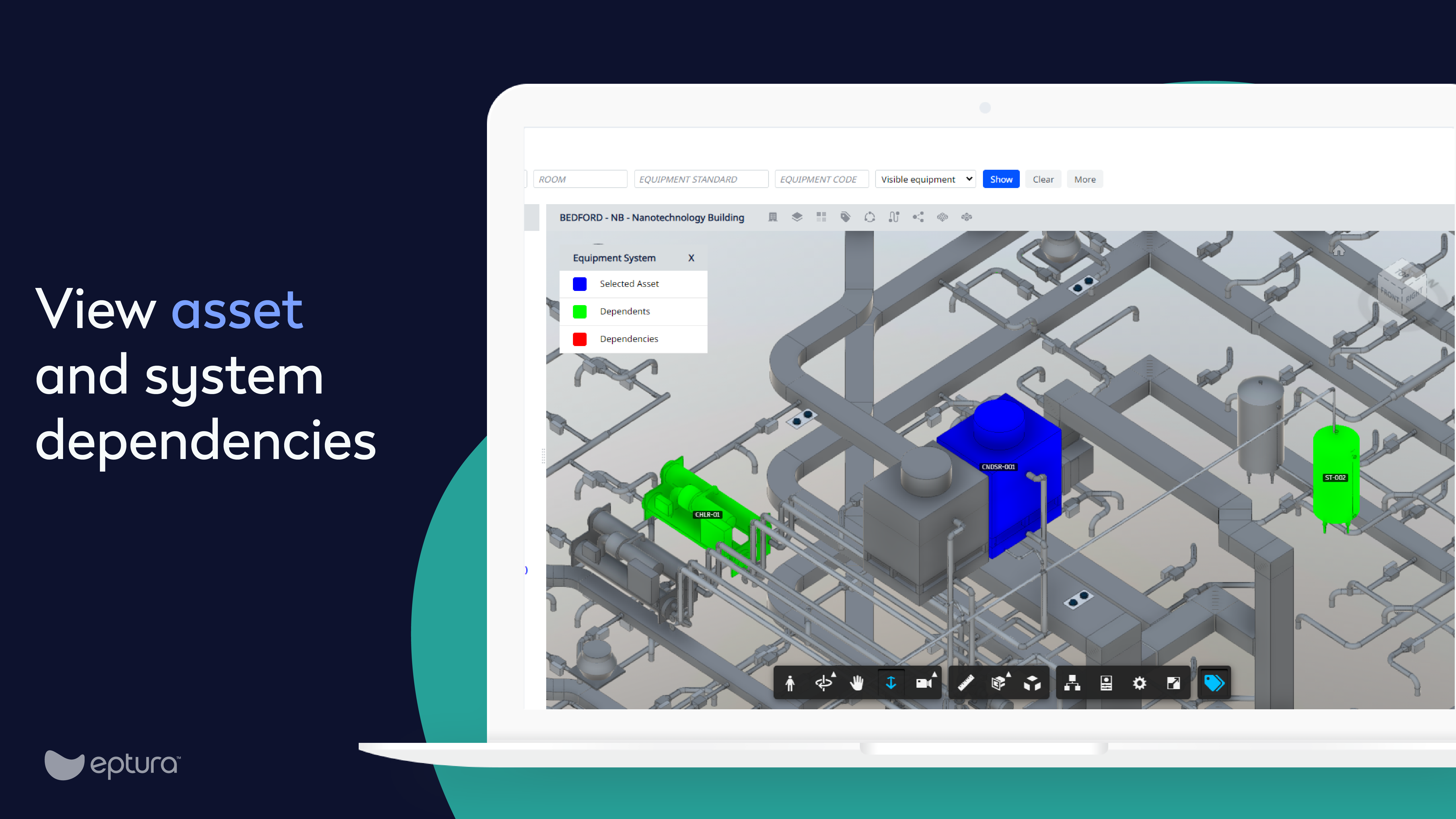- Visualize equipment systems and how they connect throughout multiple floors in the building