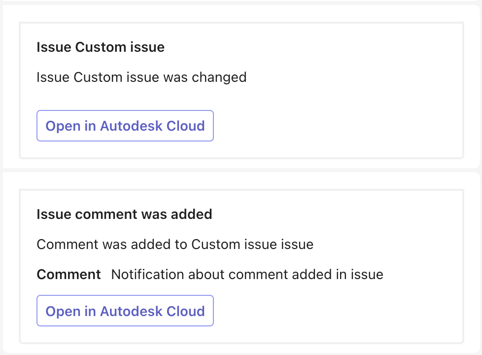 - Keep a watchful eye on your project's progress with notifications for the following entities in Autodesk Construction Cloud® (ACC):